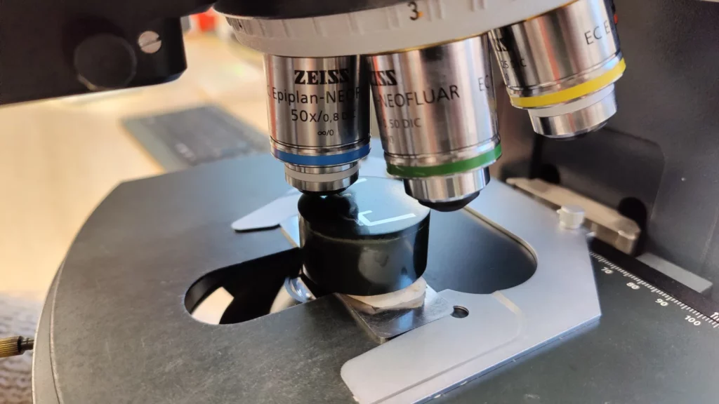 Équipements clés : microscope optique, loupe binoculaire, machine de traction, bras FARO, micro duromètre, ressuage, tronçonneuse automatique, enrobeuse (à chaud et à froid), polisseuse automatique, hotte à attaques chimiques, etc.